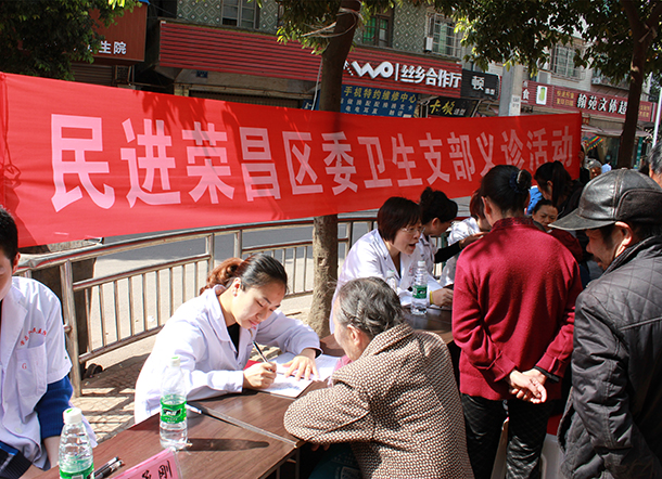 此次义诊活动由民进荣昌区委卫生支部主委张开富带队,参加义诊的有内科、外科、眼科、皮肤科、药剂科和放射科的专家和医护人员,并携带眼科仪器、血压计等医疗器械,热情为群众诊治、开处方、解答咨询、发放健康教育宣传资料。此次活动共接待就诊咨询群众200多人次,开出处方100多张。
