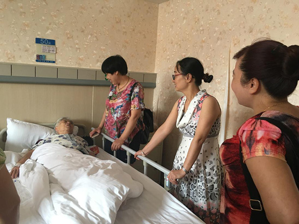 王霞详细询问了养护病房的环境、孙老师的起居住行等,并叮嘱她要注意保重身体。支部主委周学庆因故未能前往,也专门致电问候。孙世容十分激动,对组织表示感谢,表示会照顾好自己的身体,继续为民进事业作出贡献。