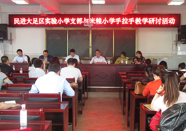 4月19日,民进大足区实验小学支部到米粮小学开展支教活动。活动由民进支部委员、米粮小学副校长刘绍高主持。大足区实验小学校长、党委书记袁位,米粮小学校长、党委书记杨超林到场并指导教学交流。