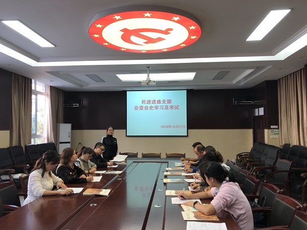 10月31日下午,民进进盛中学支部组织会员在学校至真楼会议室进行了民进会章、会史专题学习活动,并开展了专题考核。