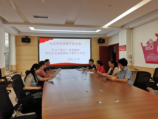 6月23日,民进重庆鼓楼学校支部召开会议,集中学习习近平总书记在全国两会期间重要讲话精神和全国“两会”精神,并开展了支部换届民主推荐。