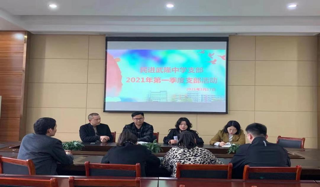3月17日,民进武隆中学支部召开2021年第一季度组织生活会。民进武隆区总支副主委、区财政局副局长冉琼出席会议。中共重庆武隆中学凤山校区党支部副书记廖鹏程应邀到会指导。