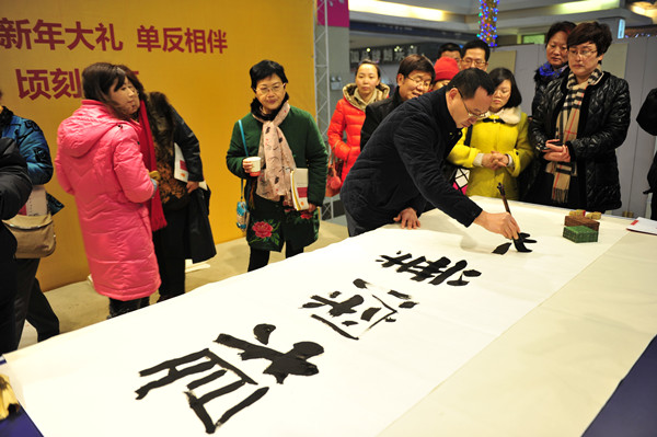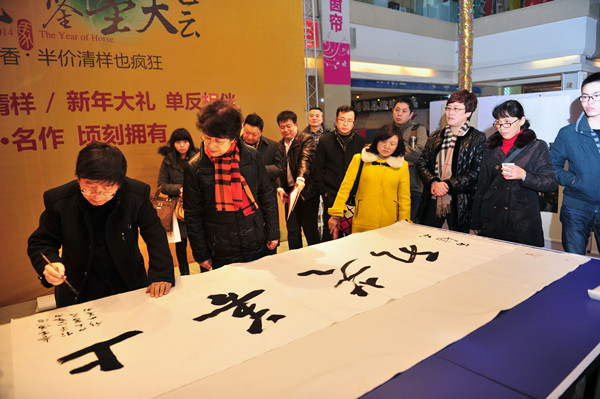 此次联展是由两地民进组织在辞旧迎新之际开展的一次“送书画献爱心”公益活动,展出作品包括书法、国画、油画及篆刻等,部分展品进行公益性出售,用于资助贫困学生。活动现场还进行了赠书活动,由全国硬笔书法协会副主席高继承捐赠的数百本《硬笔书法字帖》和《孟子格言帖》在开幕前即被一抢而空。