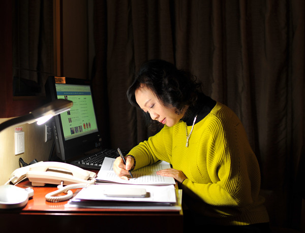 2014年3月3日早晨7:30分,北京某宾馆,全国政协委员张礼慧在房间里整理《关于设立“全民家庭教育日”的建议》的提案,到时将会在小组发言讨论环节提出建议,希望引起大家的共同关注。