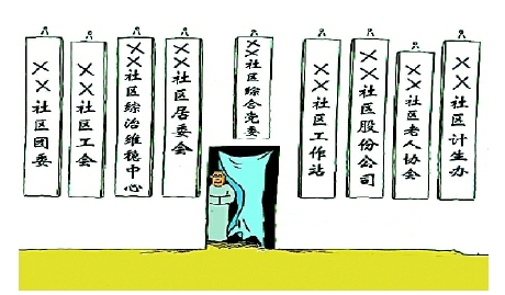 “在如此窘境下,社区俨然成了集党委、居委会、工作站、妇联、工会、团支部等诸多职能于一身的‘万能政府’,社区工作人员则成了日理万机的‘小巷总理’。”陈贵云边说边摇头。