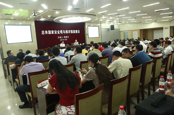 9月12日,市政协副主席、民进市委主委陈贵云在市交委作题为《总体国家安全观与海洋强国建设》的讲座,市交委机关全体同志及交委下属单位部分同志参加。