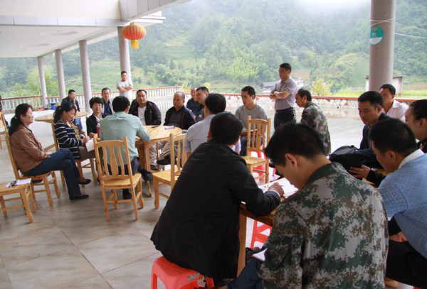 17日下午,民进市委一行在赵家乡党委书记邓维敏的陪同下,实地考察了赵家乡的自然景观、道路供水等基础设施建设、农业发展、房屋建筑、住宿接待等方面的情况,并围绕赵家乡观光农业的发展进行了座谈。中共武隆县委常委、统战部部长王频出席座谈会。
