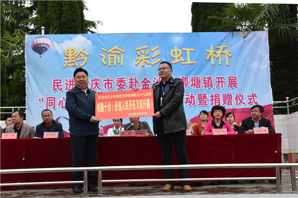 2016年4月20日,民进重庆市委专职副主委黄硕率队赴贵州省金沙县柳塘镇开展了“同心·助学”捐赠暨送教活动。