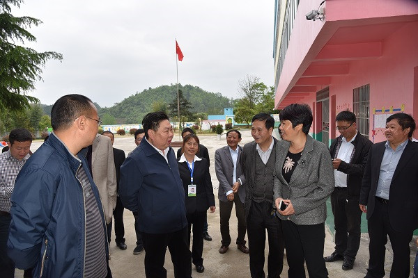 黄硕一行考察了柳塘镇石关小学、桃园小学、镇幼儿园、镇中心完小、镇卫生院等。图为在柳塘镇中心幼儿园考察。