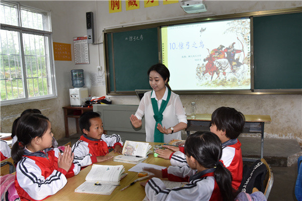 活动中,民进会员、重庆市树人凤天小学校长刘红斌带领学校教师在石关小学为当地教师上了语文、数学示范课,并进行座谈交流。图为刘洋洋老师上语文示范课。