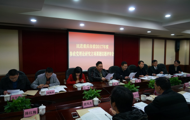11月28日,民进重庆市委召开2017年参政党理论研究立项课题结题评审会。市委会专职副主委黄硕、秘书长罗挺出席会议。重庆市政协研究室副主任吕琳,中共重庆市委统战部宣传处处长、《重庆统一战线》杂志副主编陈小东,中共重庆市委统战部研究室调研员刘陶林,重庆市社会主义学院教授罗振建应邀担任评审专家。民进重庆市委参政党理论研究会会长、西南政法大学高等研究院院长侯东德主持评审会。