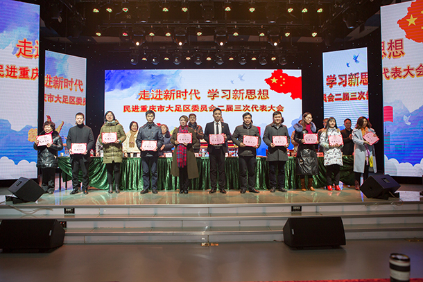 1月19日,民进重庆市大足区委在大足区广播电视台演播厅召开二届三次代表大会,学习中共十九大精神、民进十二大精神、大足区“两会”精神,并对2017年工作进行了总结,安排部署2018年工作。民进重庆市委秘书长罗挺,中共大足区委常委、统战部部长廖文丽,民进大足区委主委李志出席会议。 李志代表民进大足区委作工作报告。报告指出,2017年,区委会通过深入学习宣传贯彻中共十九大精神,坚持理论学习,加强思想建设,推进组织建设。围绕全区“1368”发展思路,区委会积极组织开展专题视察调研,为全区文化产业、教育、经济发展等建言献策,并根据特色服务活动品牌创新开展社会服务。全年共提交人大建议、政协提案49件,社情民意48条,其中3件提案被评为重点提案,2件提案被评为优秀提案。民进大足区委还分别荣获了民进全国机关工作先进集体、民进重庆市委参政议政工作先进单位、会刊工作先进单位等称号。2018年,民进大足区委将紧紧围绕中共区委、区政府中心工作,加强思想、组织建设,提高参政议政能力,积极开展社会服务等,为建设美丽大足、幸福大足做出积极的贡献。 罗挺代表市委会对区委会年度工作给予充分肯定。他强调,政治交接是参政党发展的永恒主题。他希望大足民进要立足新时代新方位,把学习贯彻中共十九大精神,特别是习近平新时代中国特色社会主义思想作为政治交接的时代内涵,结合学习贯彻民进十二大精神和新会章,结合新一轮主题教育活动,结合纪念“五一”口号发表70周年,加强民进优良传统教育,增强接受中国共产党领导、坚持和发展中国特色社会主义的自觉性和坚定性,坚持好、完善好、发展好中国共产党领导的多党合作和政治协商制度,确保政治信念不淡化、政治方向不偏移、政治传统不中断。 廖文丽勉励会员们要凝聚共识,在合作发展中牢牢把握正确政治方向。要担当作为,在服务大局中作出新贡献实现新作为。要提升能力,在推进民主政治进程中不断加强自身建设。 会议还表彰了2017年度各项工作中取得突出成绩的4个先进集体(支部)、33名先进个人。