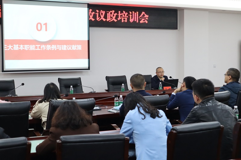 民进重庆市委会参政议政处处长陈涛受邀前来授课。他从学习参政议政工作条例、建言献策的目的意义、如何建好言献好策三方面展开讲解。整个课堂既有互动问答又有典型案例分析,讲座深入浅出,让大家深受启发。