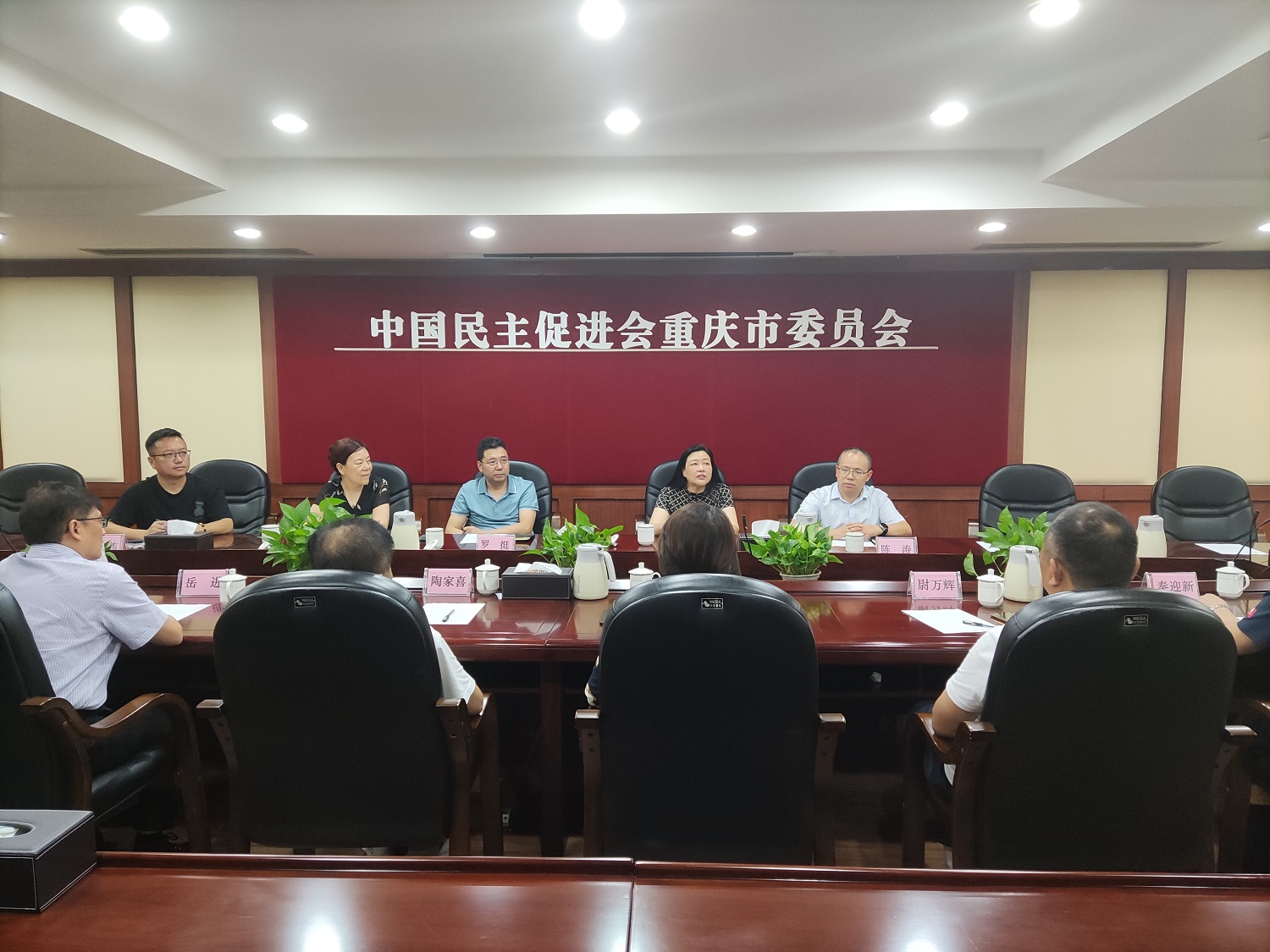 7月5日,武汉民进企联会会长陈美杉带队走访民进重庆市委会,市委会专职副主委罗挺出席会议,重庆民进企联会副会长王传霞、简莉参加座谈会。