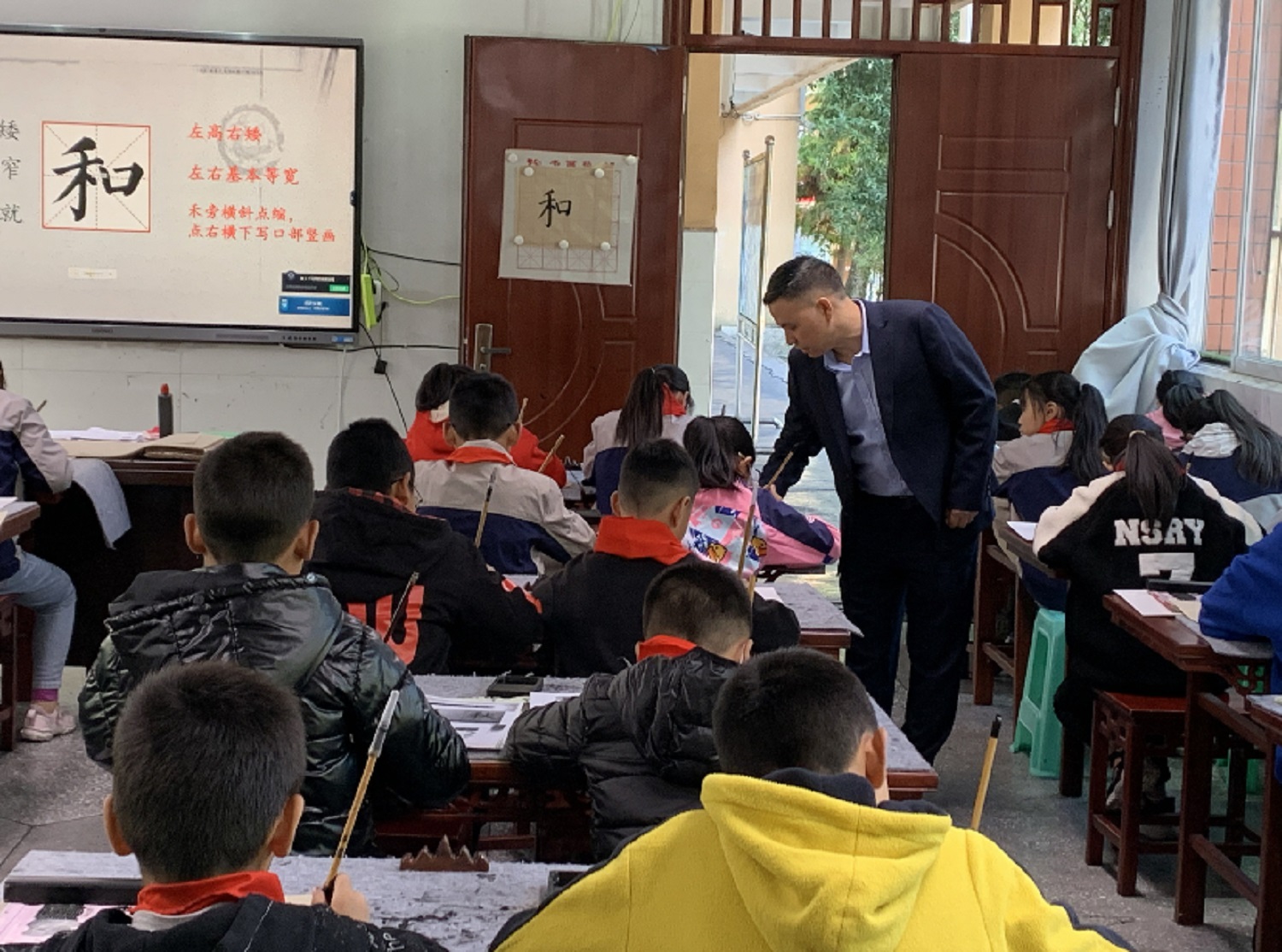 针对城口县咸宜镇书法特色学校建设需求,本次活动还专门开展了书法课程送教。民进会员、巴南区宗申小学书法高级教师田松,民进会员、巴南区鱼洞四小书法教师冉宽,民进市委会以及市发改委帮扶集团驻镇工作队相关同志参加活动。