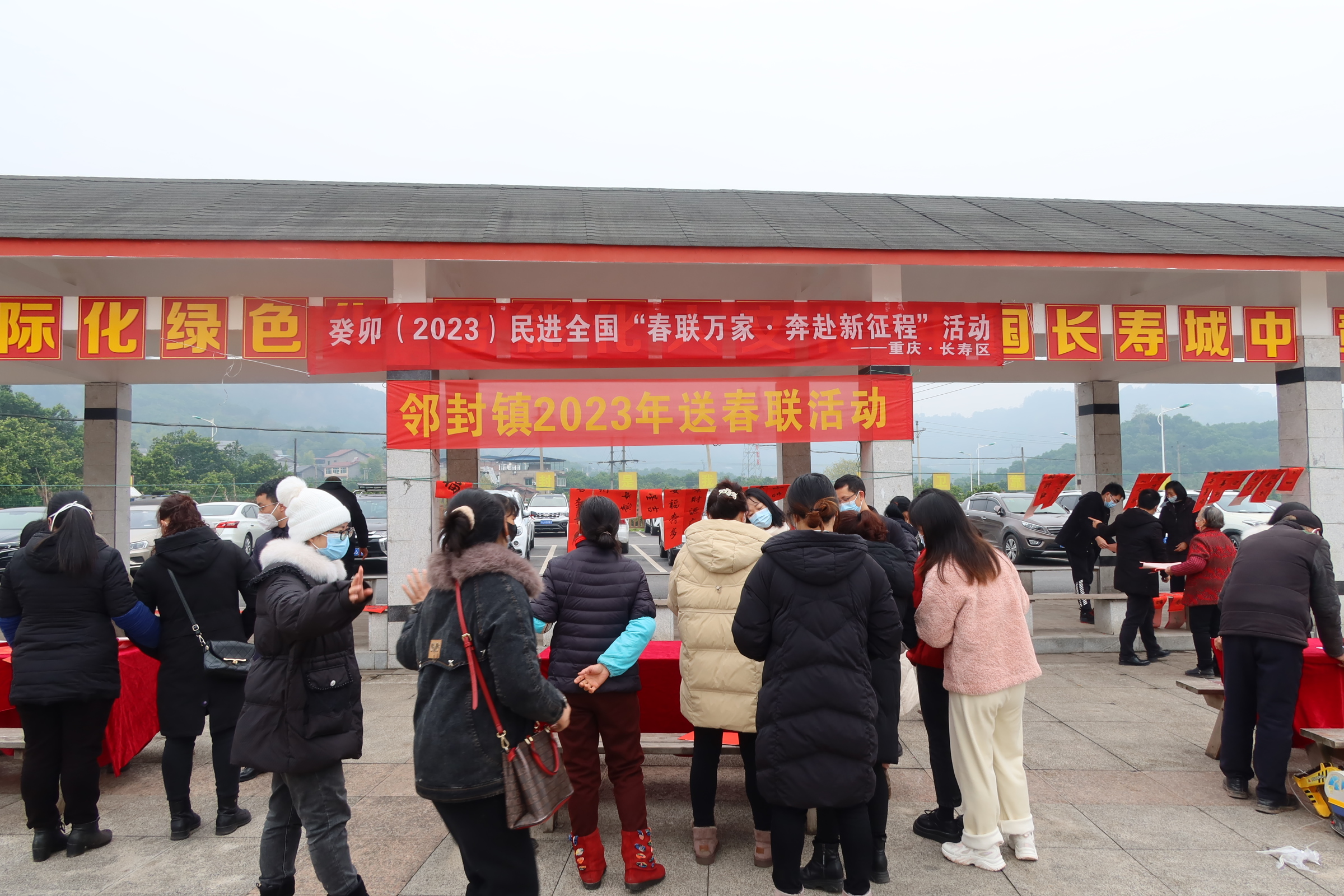 近日,民进长寿区委会组织会内书法家和书法爱好者,到长寿区邻封镇开展癸卯(2023)“春联万家·奔赴新征程”活动。民进长寿区委会主委、区民政局局长李佳参加活动。