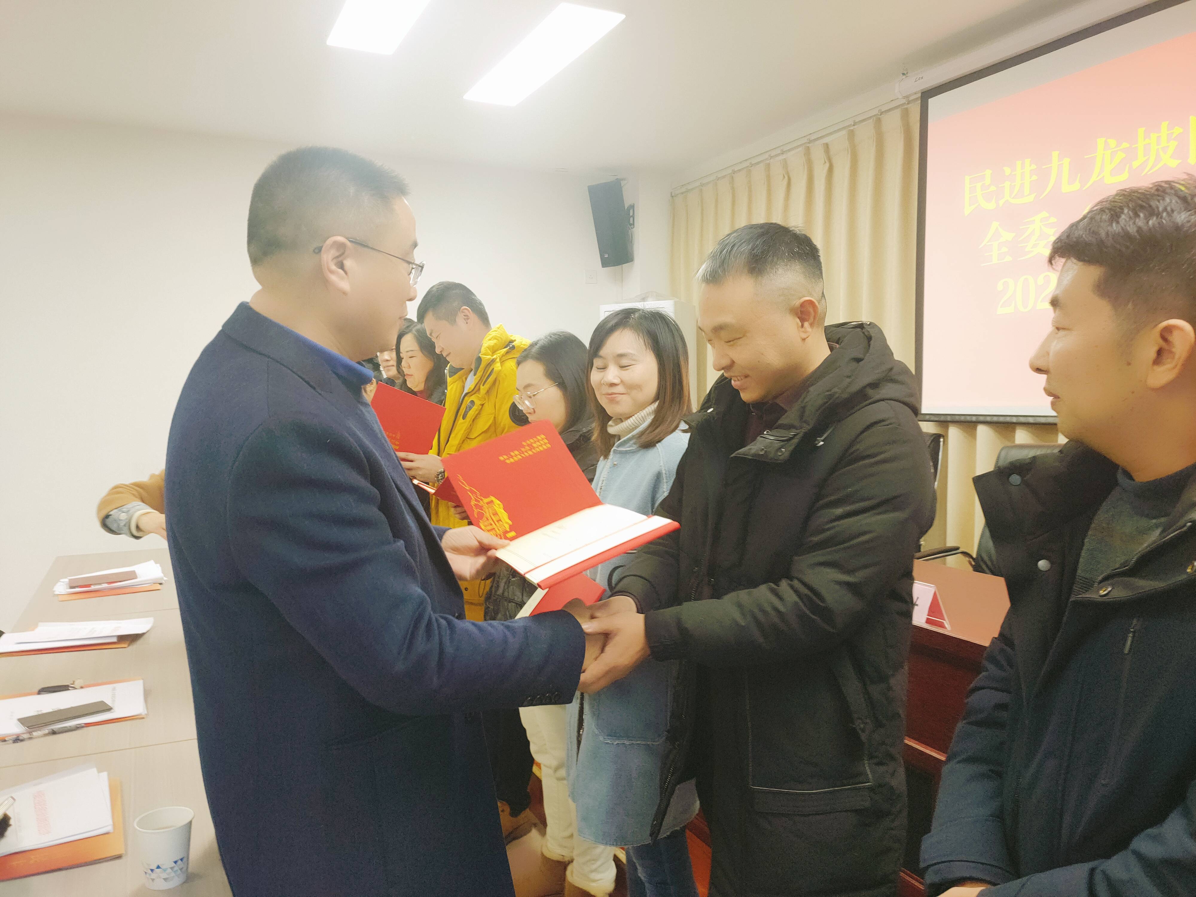 会议传达学习了重庆市建设成渝双城经济圈工作推进大会、全市统战部长会议、九龙坡区两会等重要会议精神,专题学习了《中国民主促进会章程》,并为2022年新会员颁发入会通知书。