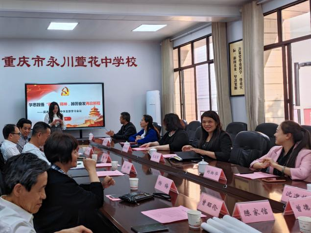 近日,民进永川区萱花中学支部召开专题学习会,民进永川区委会主委、区城市管理局局长杜金蓉,民进区委会副主委邓清勇、刘扬华、谭立杼出席会议,萱花中学党委书记、校长龙远琴,副校长王平、段然、姜帅应邀到会指导。会议由民进萱花中学支部委员戴茜主持,支部全体会员参会。