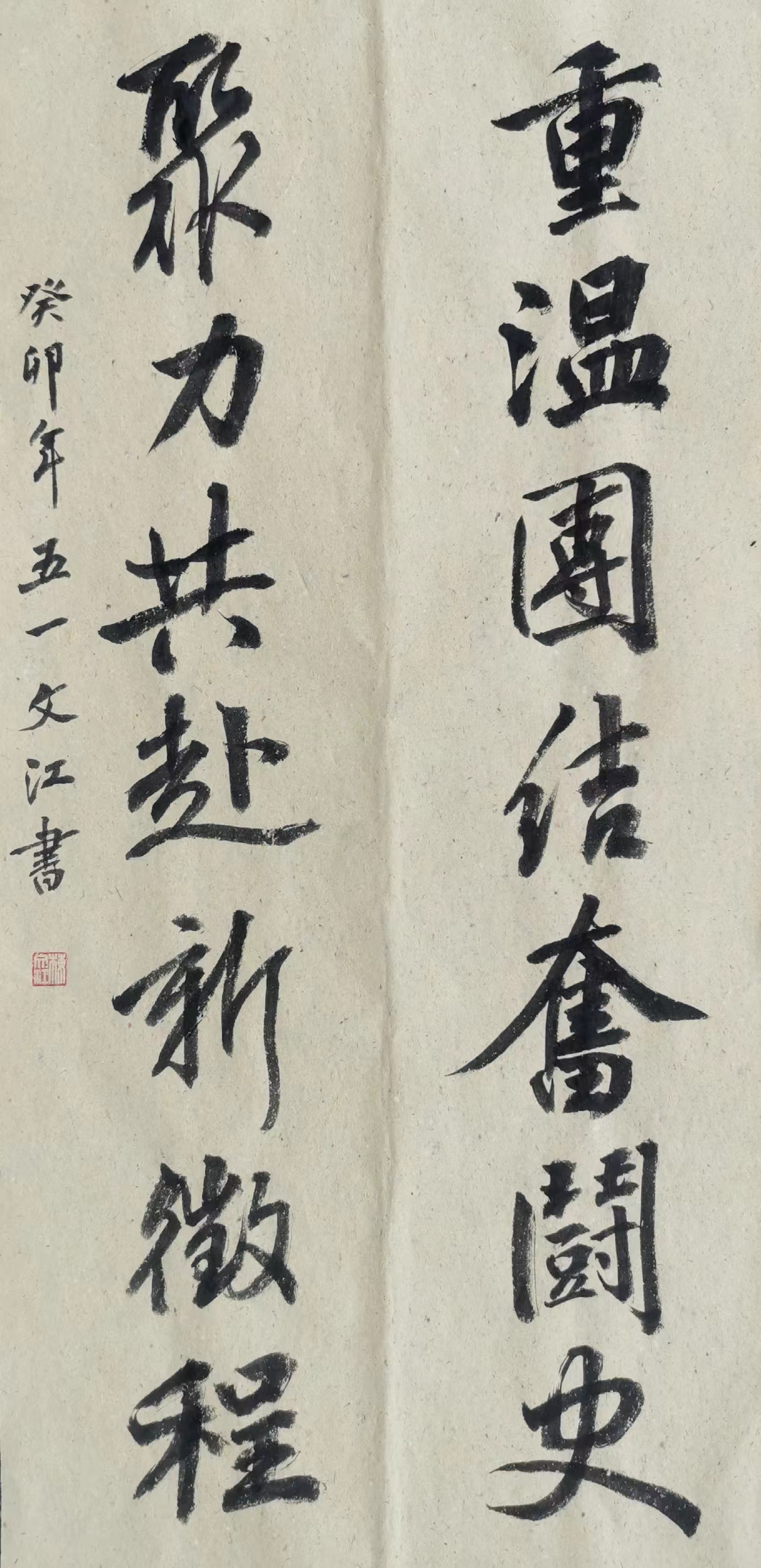 纪念中共中央发布“五一口号”75周年书法作品《重温团结奋斗史 聚力共赴新征程》