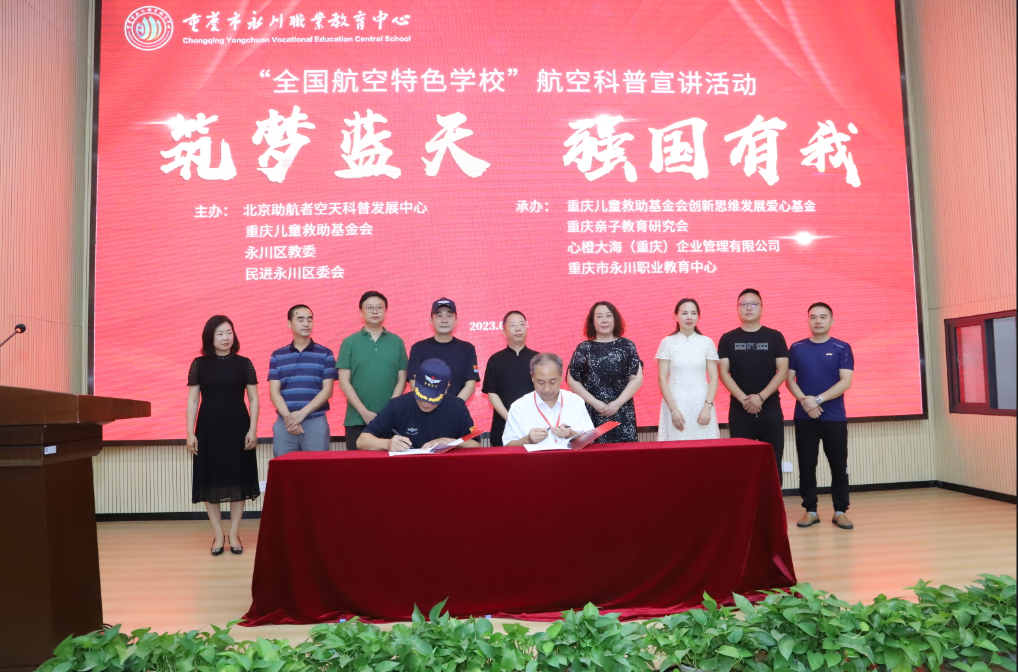 北京助航者空天科普发展中心和永川职教中心签订了“全国航空特色学校”建设发展的合作框架协议